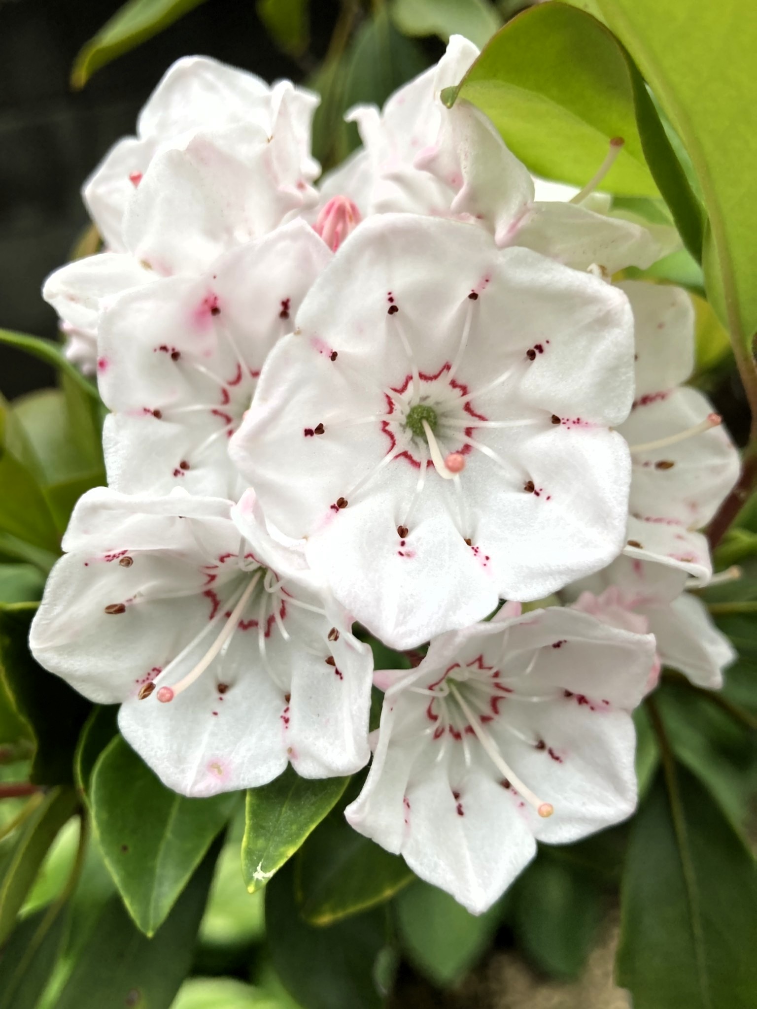 日々の寒暖の差が大きく、天候不順が続いています。今月の花にはカルミアを選びました。いっぱい咲いた星のような形の花が、とても綺麗です。