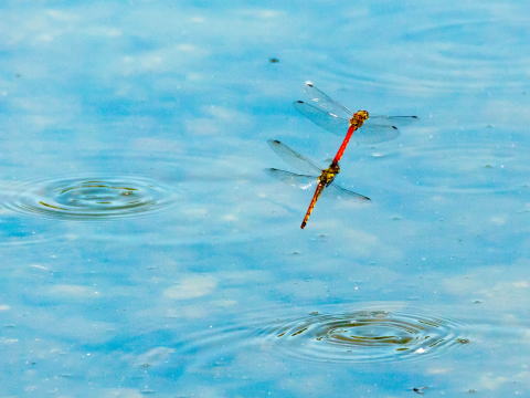 今年はいつになく、秋の訪れが早く感じられます。9月は赤とんぼ(アキアカネ)の産卵シーズンでもあります。撮影場所は越谷市花田園です。