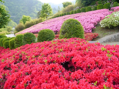 今月のテーマは「つつじ」、新緑に囲まれて、つつじが咲き始めています。