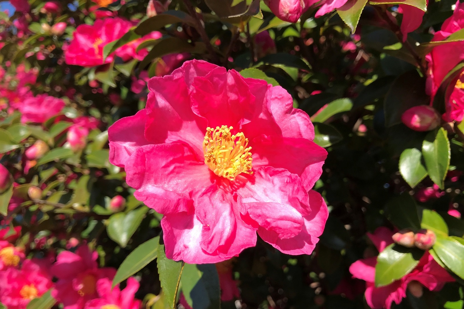 日々の寒暖の差が大きく、天候不順が続いています。今月の花にはカルミアを選びました。いっぱい咲いた星のような形の花が、とても綺麗です。