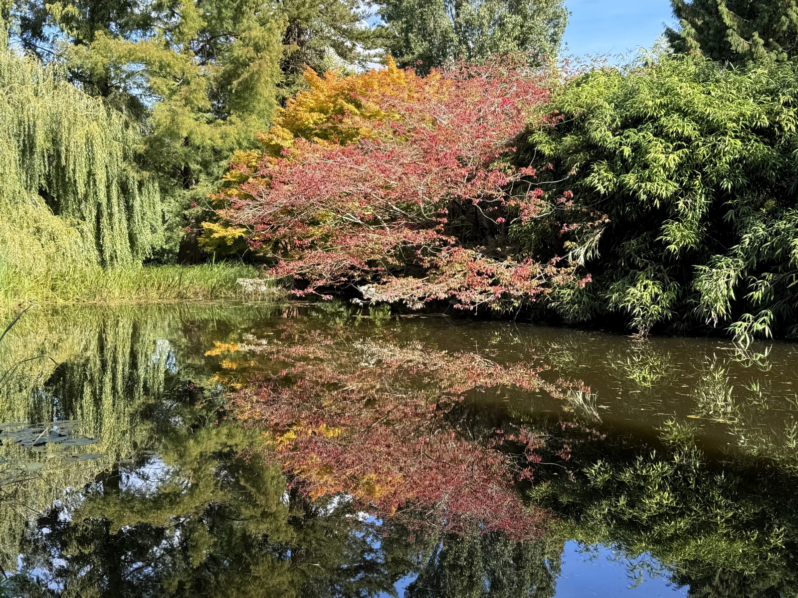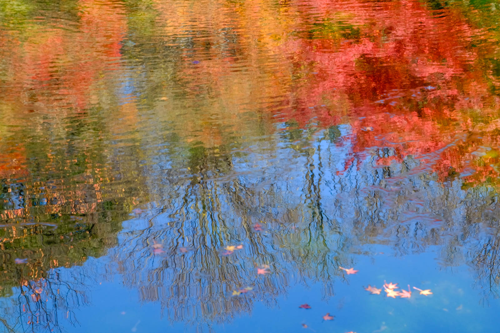 今月のテーマは「紅葉」、池の映り込みの中に、秋の深まりが感じられる情景です。小石川後楽園(文京区)です。