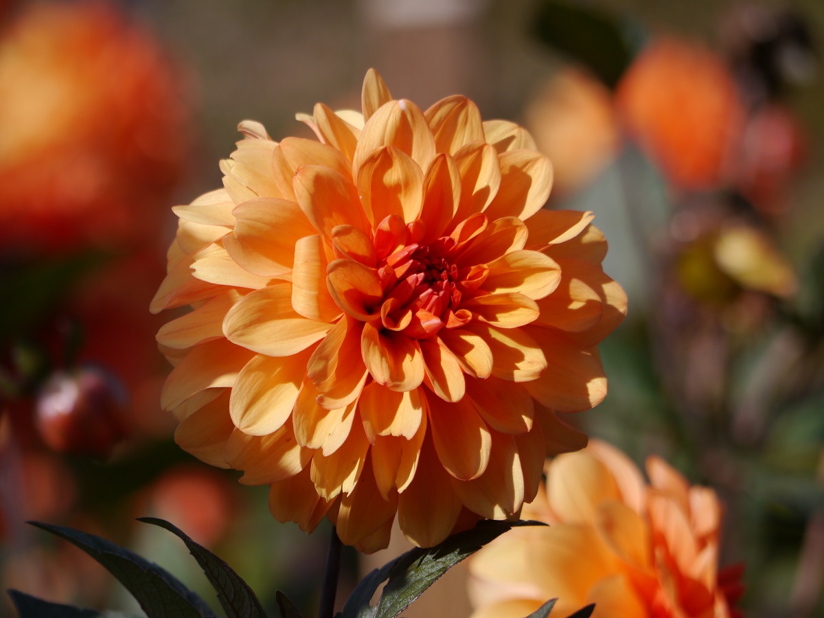 夏の余韻が残る中、秋は訪れてきています。今月の花にはダリアを選びました。明るい日差しを受けてオレンジ色に輝き、光と影の織り成す模様で、立体的に浮かび上がっています。