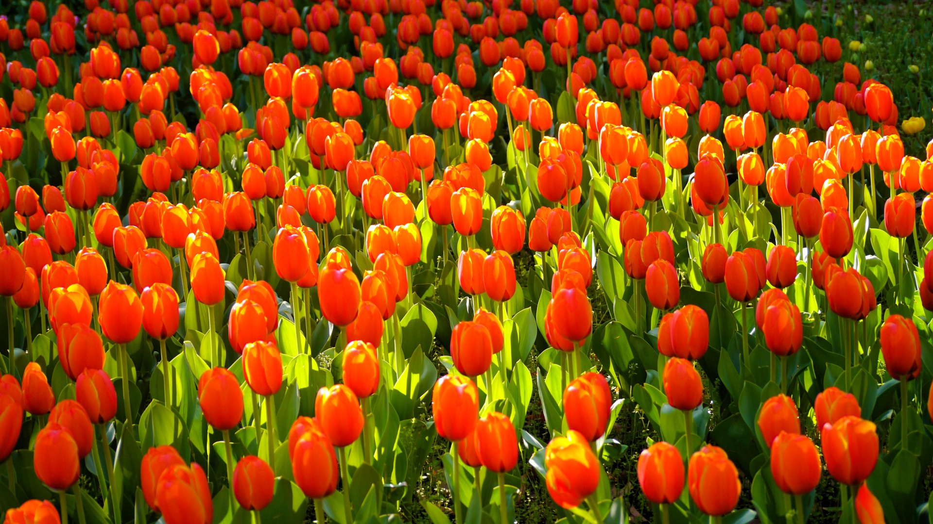 寒暖の差が大きい日々を経て、花の便りがたくさん届く季節になりました。今月の花はチューリップ、深紅の花柄のカーペットのようです。