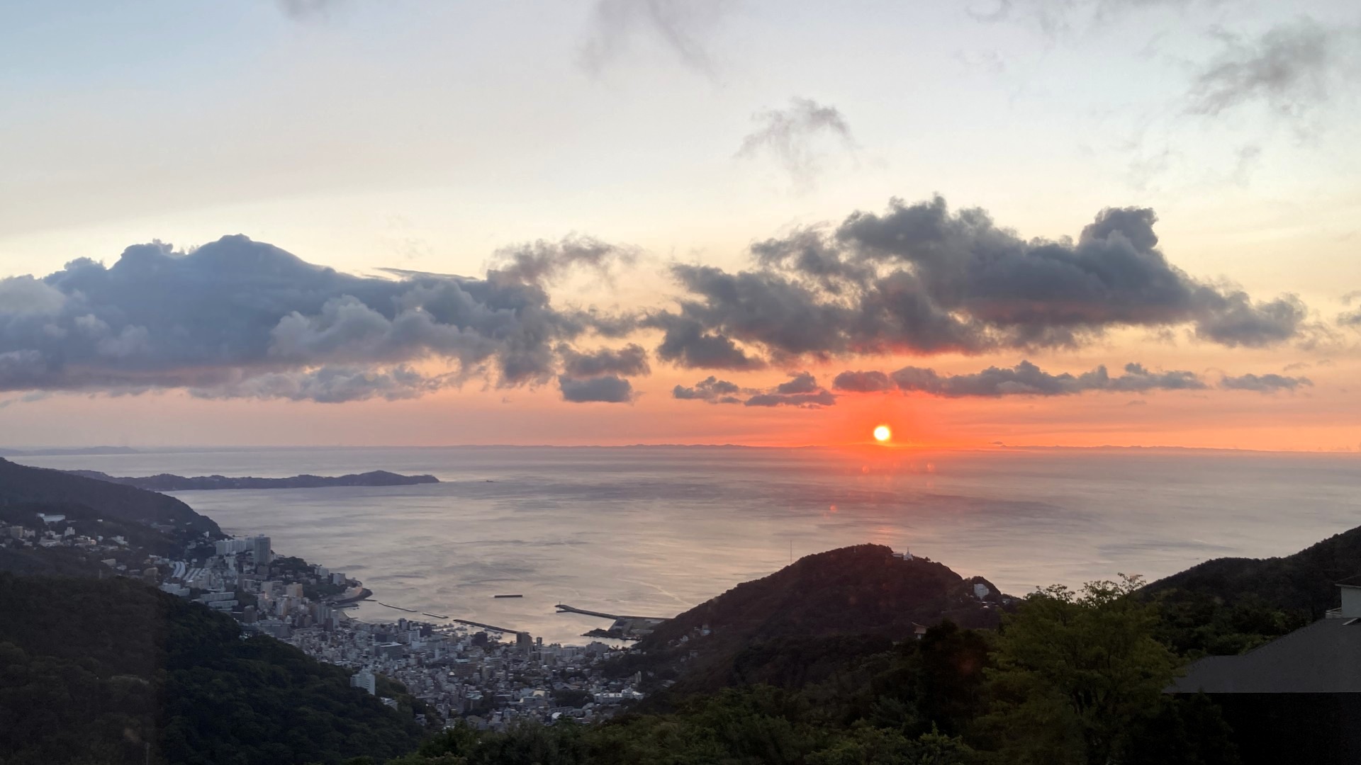 厳しい暑さが続く中にも、朝夕には暑さが柔らぐ季節になってきました。今月の画像は日の出の情景です。水平線を境に大きく拡がる海と浮かぶ雲、そこに顔を出したお日様が鮮やかに輝いています。